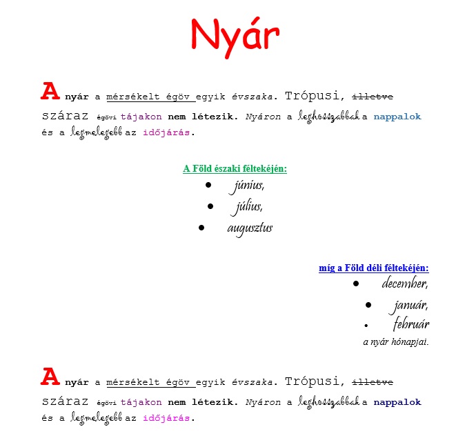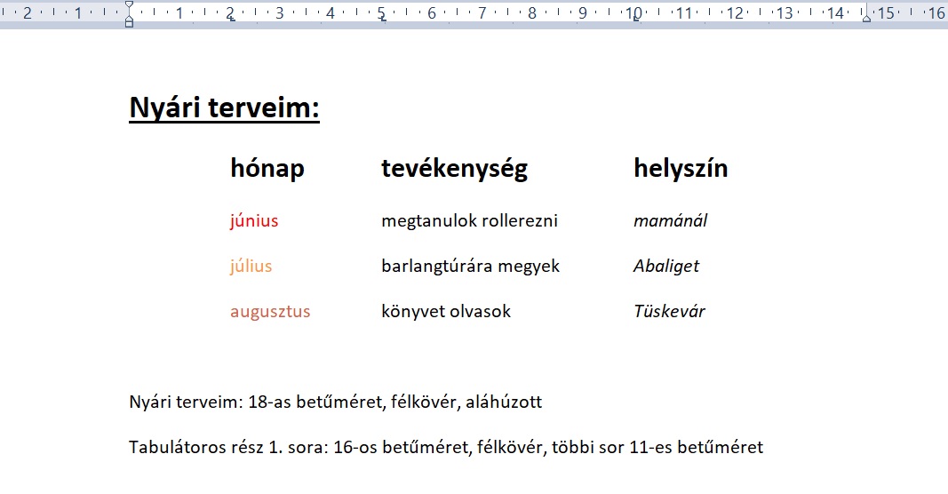 a nyár hónapjai: Times New Roman, 12-es méret, dőlt