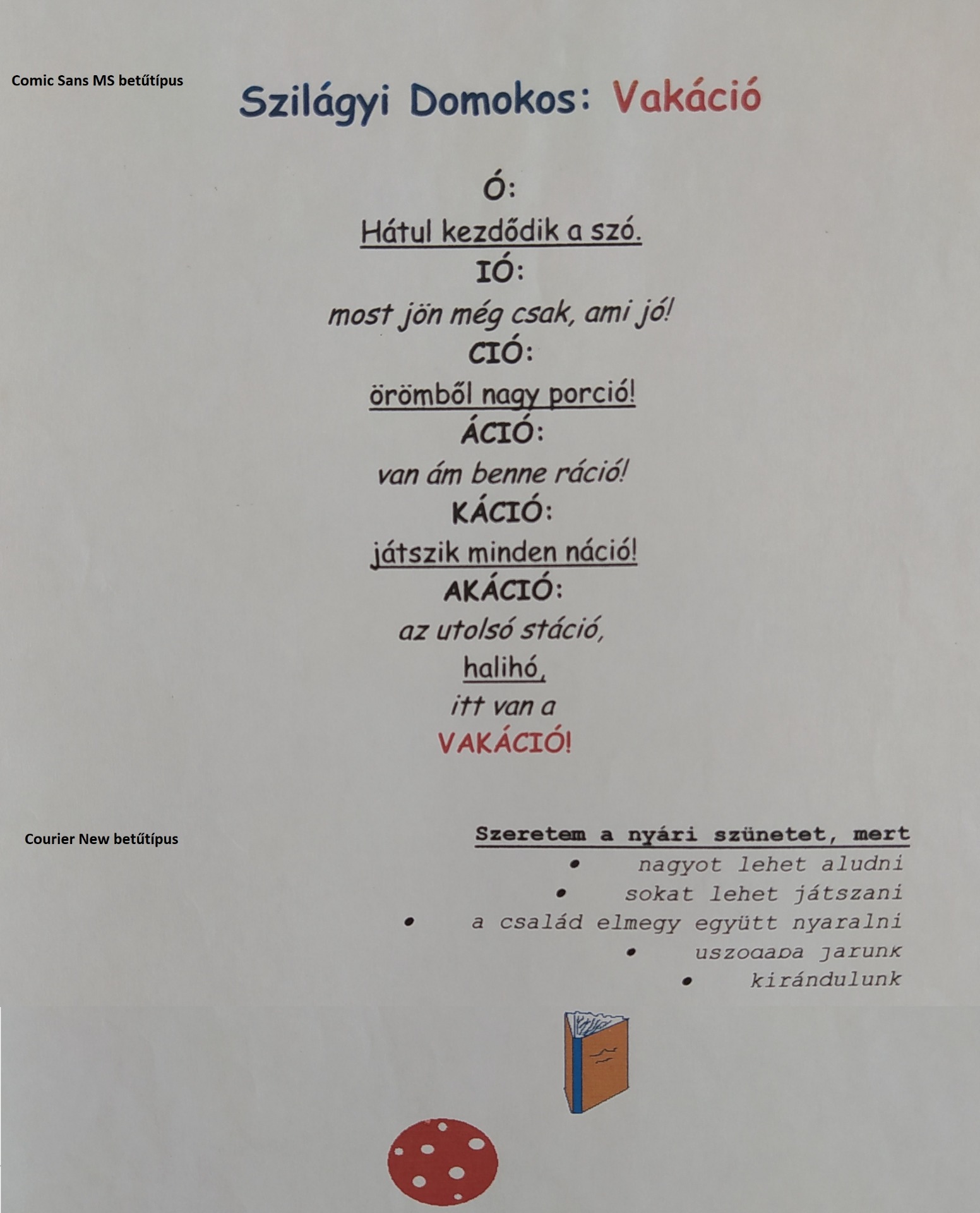 Cím: Comic Sans MS, 48-as méret, élénk vörös
